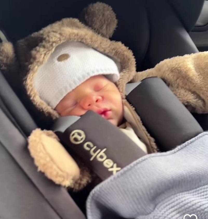 Първо, още в болницата Ивет показа ръчичката на бебето. А сега показа как спи спокойно, докато се вози в колата, заедно с мама и татко.