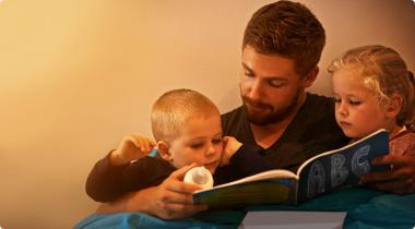 Баща чете книжка на децата си. Снимка: Shuterstock
