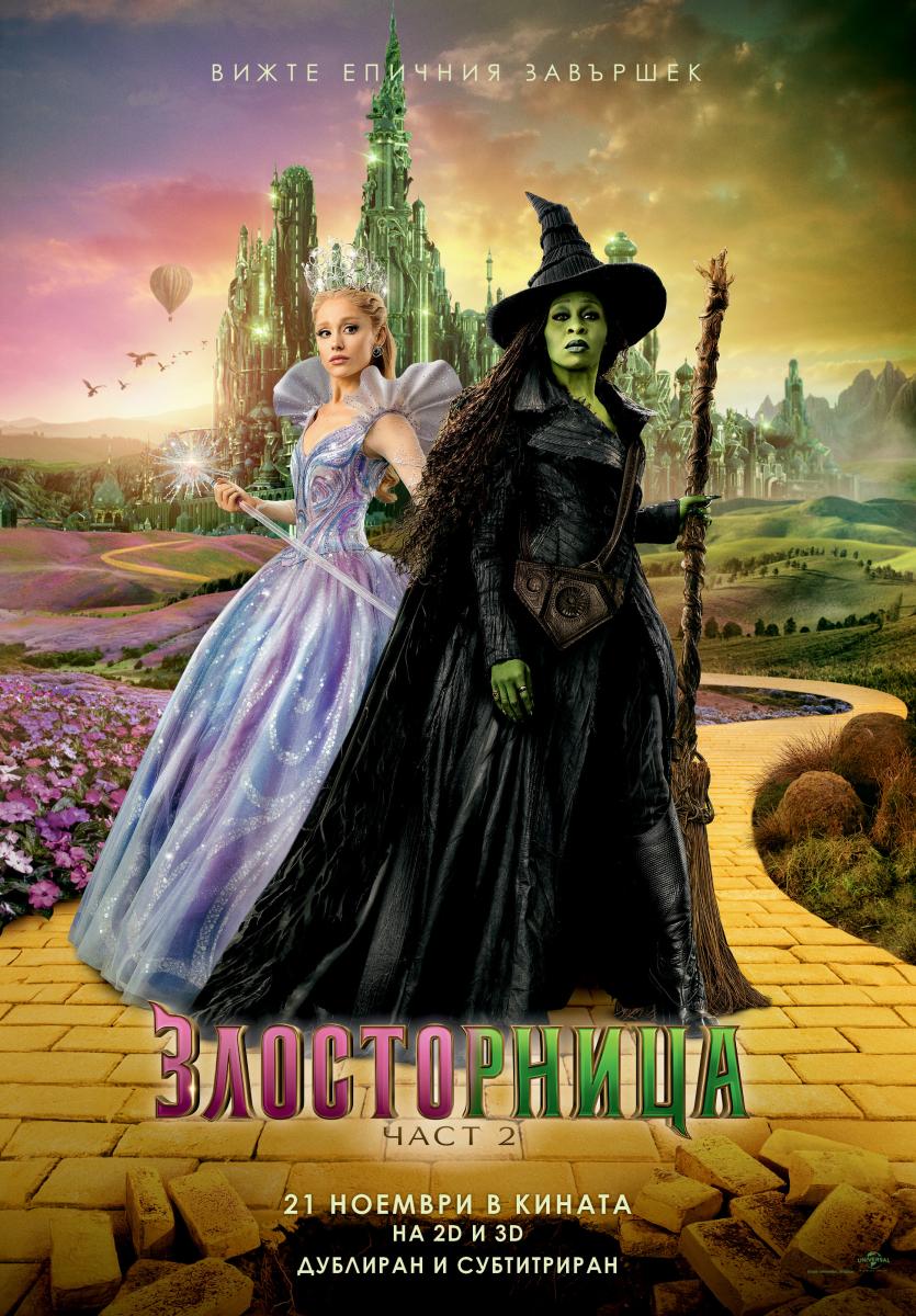 Втората част на историята отвежда публиката още по-дълбоко в света на Оз, където съдбите на Елфаба и Глинда най-после се преплитат в кулминация, която бележи края на едно приятелство… и раждането на една легенда.