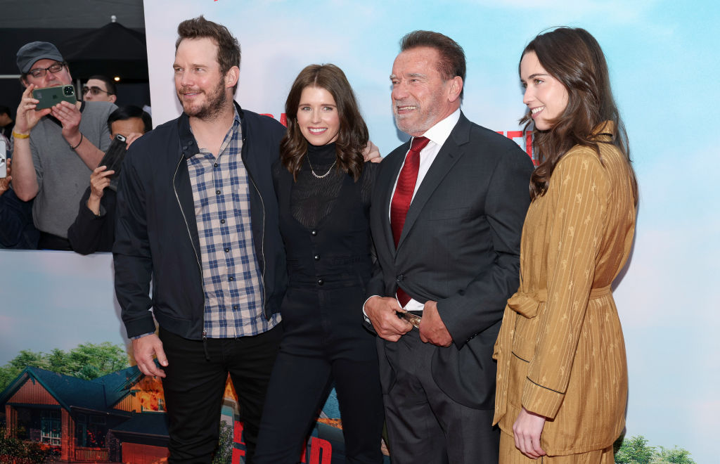 Крис Прат, Катрин Шварценегер, Арнолд Шварценегер и Кристина Шварценегер на премиерата на „FUBAR“. Снимка: Getty