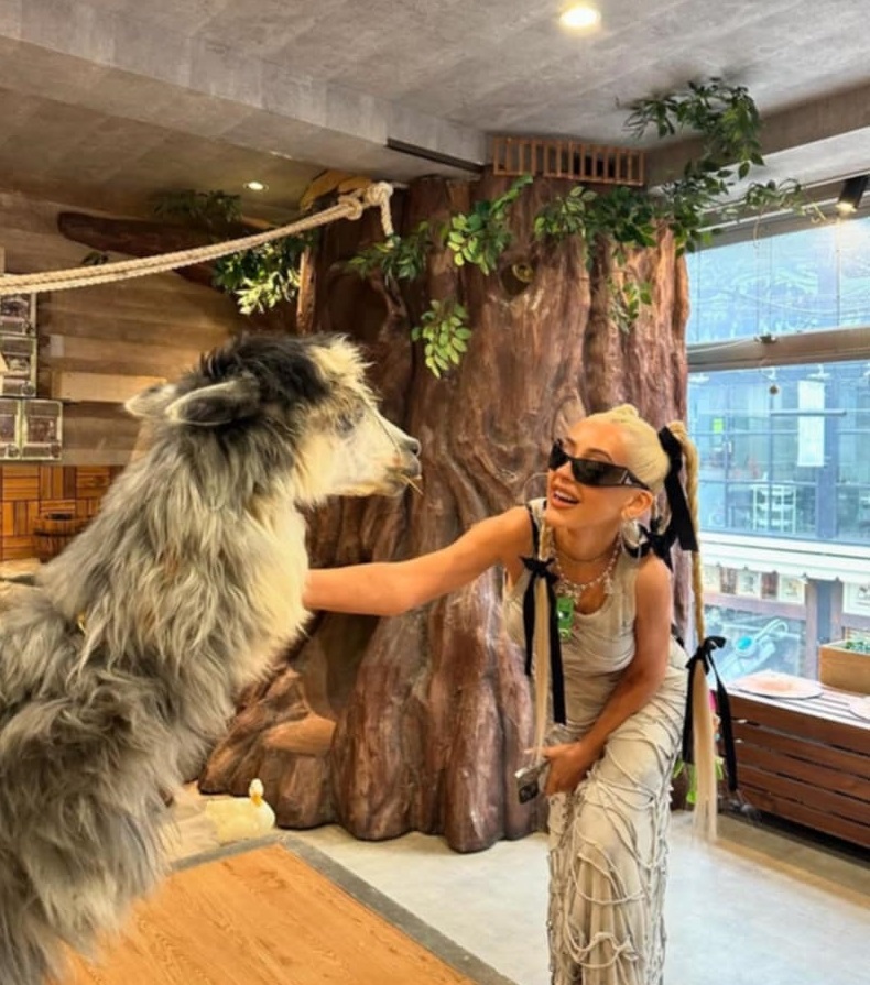 Имаше и кадър, на който русата красавица гали алпака, явно почивайки на екзотично място.