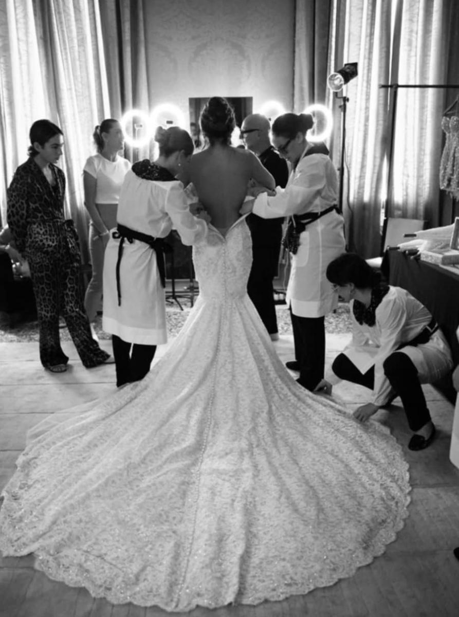 „Не просто рокля, а поезия. Благодаря ви Dolce & Gabbana за магията, която сътворихте“ - написа булката снимките, направени по време на предсватбената фотосесия за Vogue.