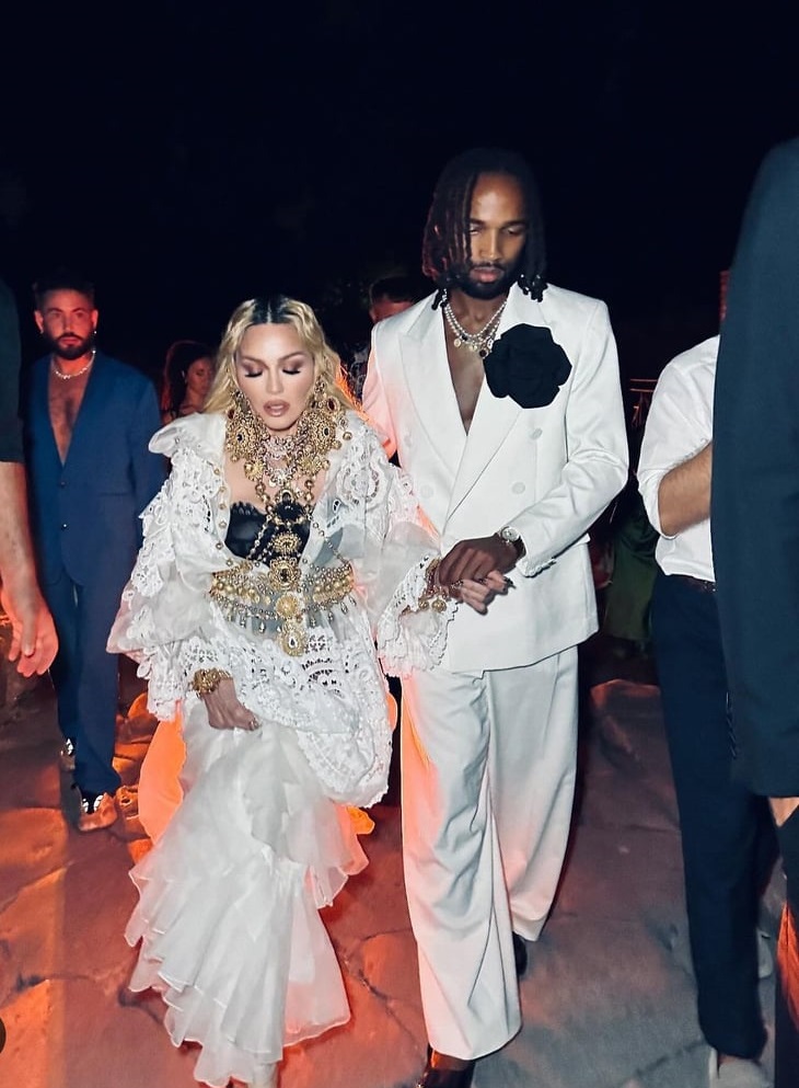 За празника си Мадона облече снежнобяла дантелена рокля, която допълни със златен колан и масивни бижута.