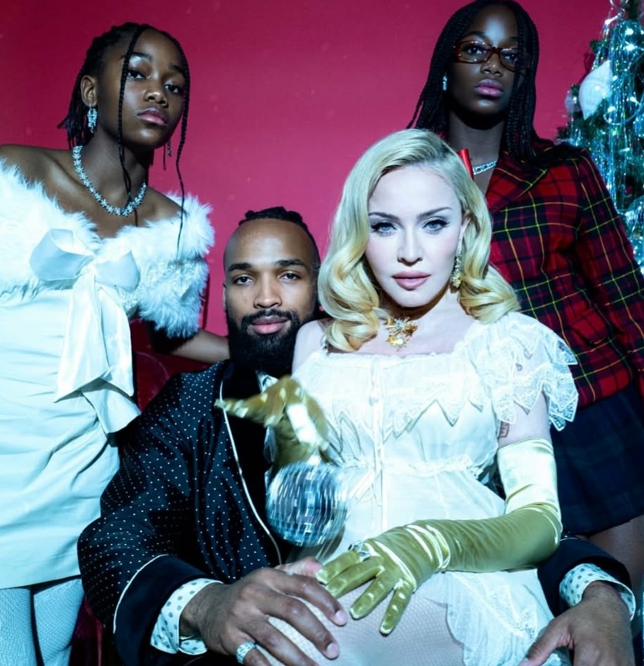Мадона сподели семейни снимки с феновете си. За празниците тя публикува новогодишна фотосесия с 29-годишния си приятел Аким Морис и дъщерите си близначки Стела и Естер - най-малките от шестте ѝ деца.