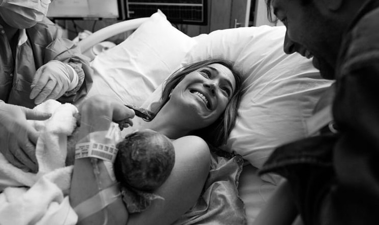 "Лу е тук!", написа гордата майка до черно-бяла снимка на бебето си. - Луиз Евърет Голдсмит се роди щастлива и здрава, точно навреме за сезона на Дева“, написа тя.