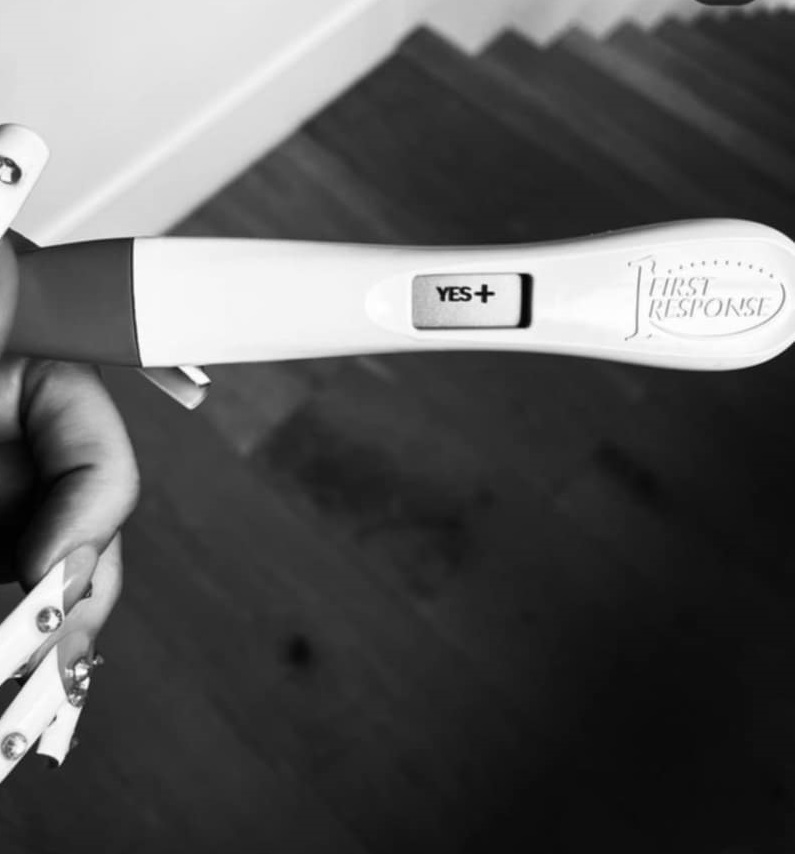 На друга снимка, бъдещата майка държи положителен тест за бременност.