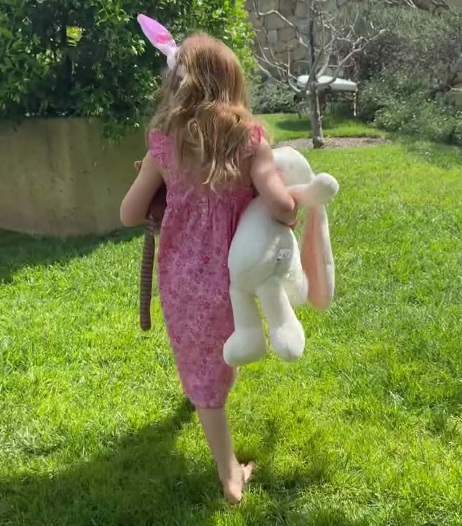 Лилибет е с розова рокля и празнични заешки ушички за празника.