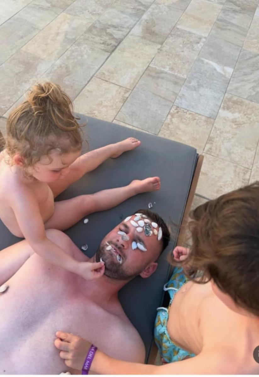 Леа реди миди по лицето на баща си. Снимка: Instagram