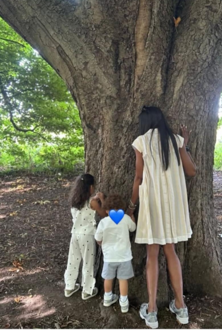 Наоми Кембъл публикува снимка с децата си как прегръщат дърво в гората. – не го прави често, затова последователите й в социалните мрежи следят с интерес. Така установяват колко са пораснали децата й. Макар тя да не показва лицата им, дори все още не е съобщила имената им и каквито и да е подробности за тях.