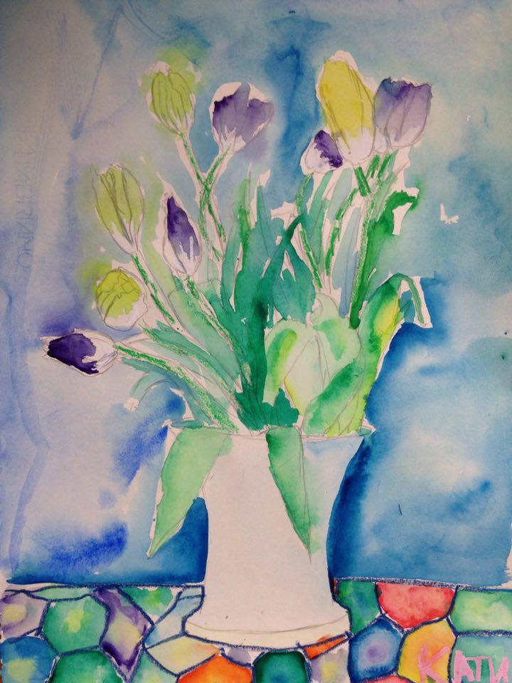 Милата малка Кати поднася нежни цветя, нарисувани със замах, за които много благодарим. Такива рисунки ни правят деня, както се казва!