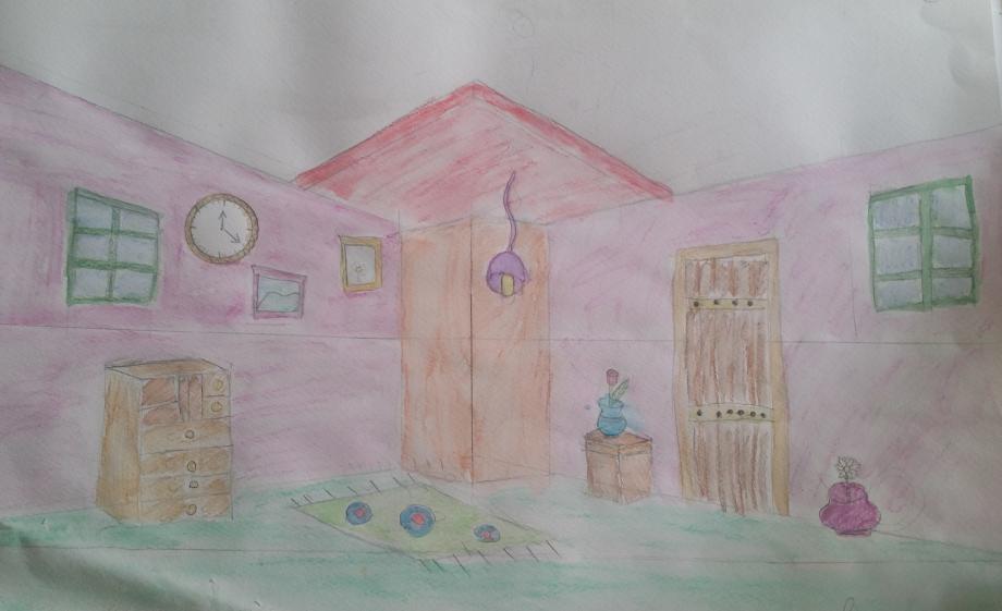 Яна овладява тайните на перспективата - вижте само колко добре се е справила с рисунката на своята стая. Да, отбелязваме, че е много подредена - килимче, шкафче, часовник, картини - всичко изглежда идеално!