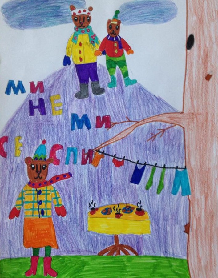 Калина от 126 ОУ е нарисувала страхотна реплика по картинките в книжката "Ми не ми се спи" на Мила Попнеделева-Генова и с радост ви я показваме, защото разказва страхотна история: как мама мечка чака своите пухкави скиори да се приберат, за да пият кафе с курабийки.