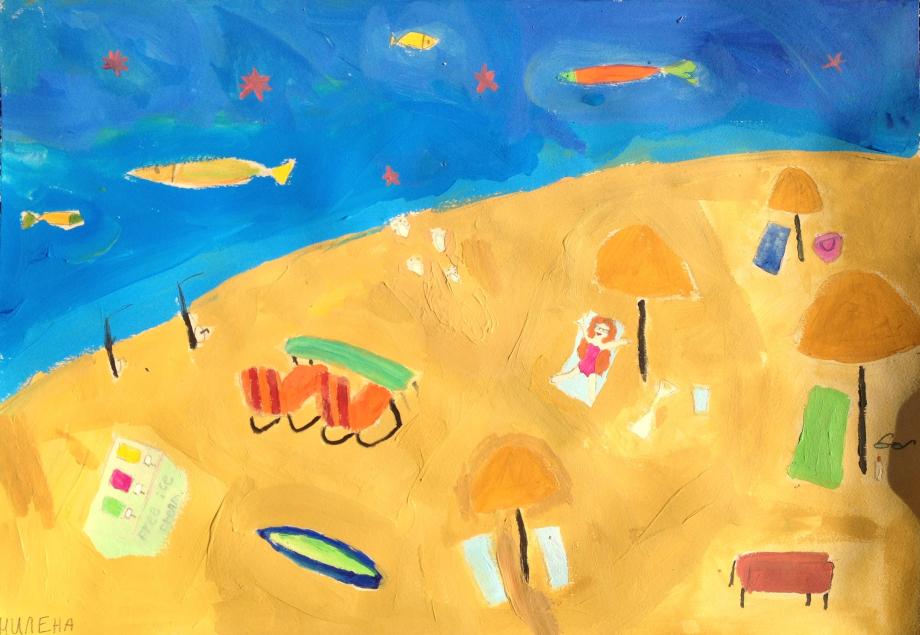 Плажна история, разказана с темперни бои - толкова е жизнерадостна и топла. Благодарим на Милена, че ни припомни колко хубаво беше през миналото лято и че ни накара да мечтаем - колко хубаво ще бъде през идното лято... Нямаме търпение!