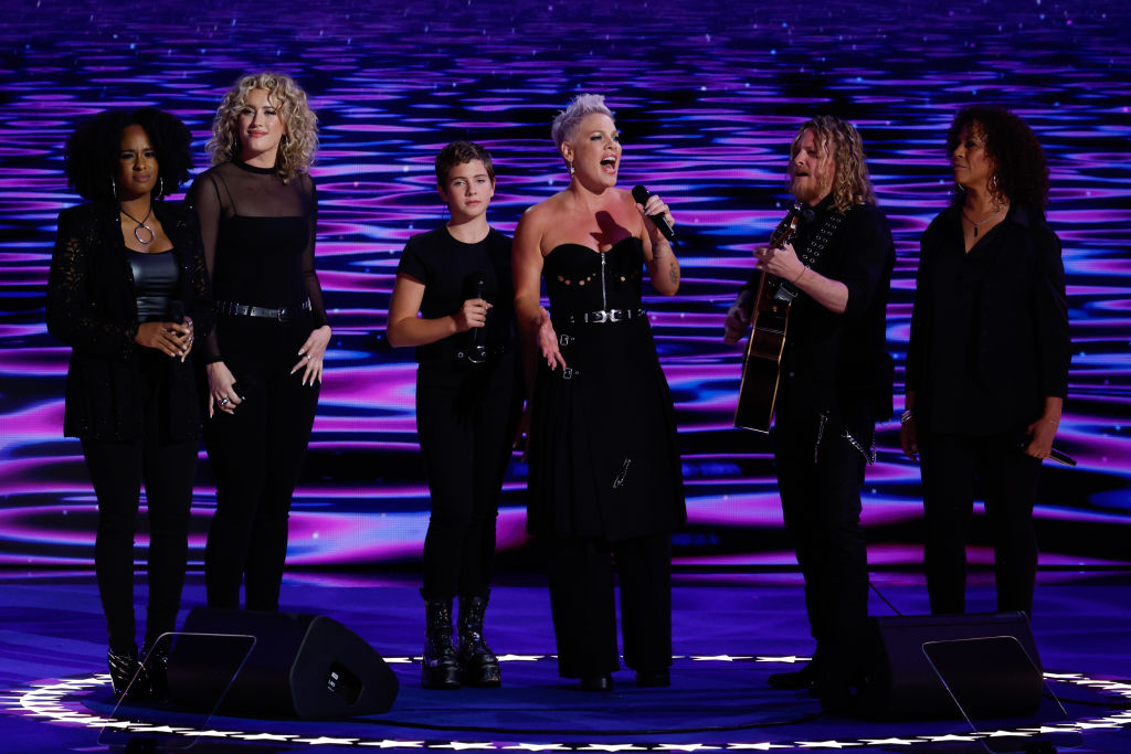 Пинк и Уилоу заедно изпълниха хита на певицата от 2017 г. „What About Us“ в акустичен аранжимент, придружен от редовния им китарист Джъстин Дерико.