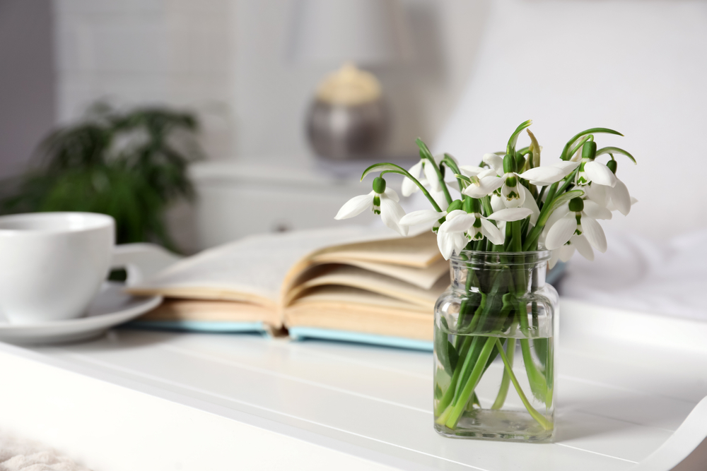 Чаша кафе, кокичета и разтворена книга. Снимка: Shutterstock