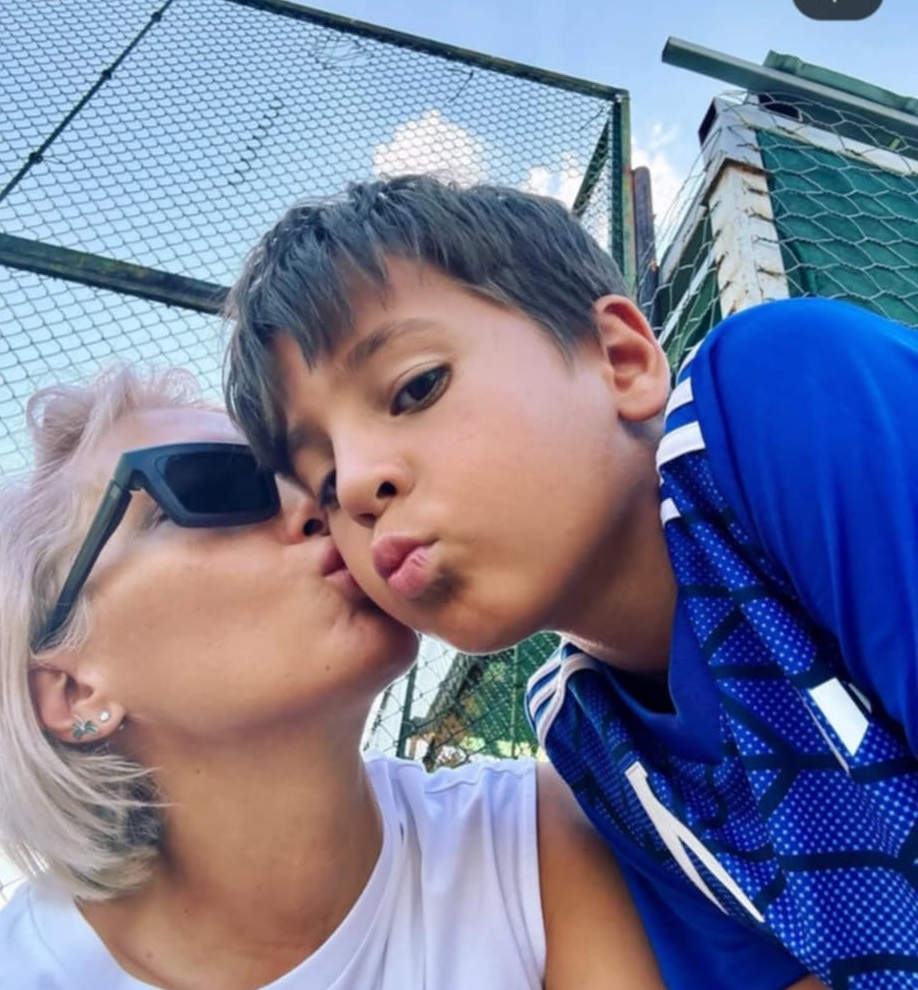 Ромина целува сина си, за да го насърчи. Снимка: Instagram