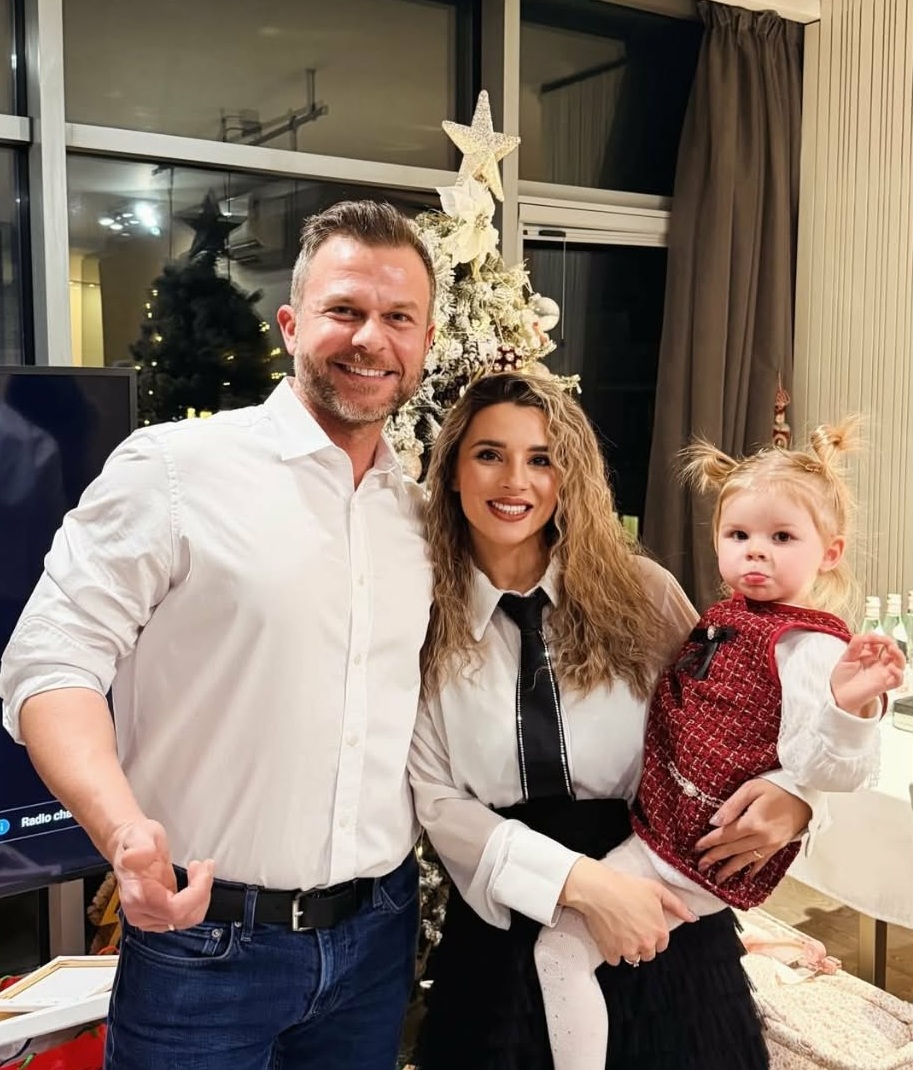 Той публикува поредица от снимки в домашна атмосфера пред елхата заедно с 2-годишната Луиза и съпругата си Станислава Стоева.