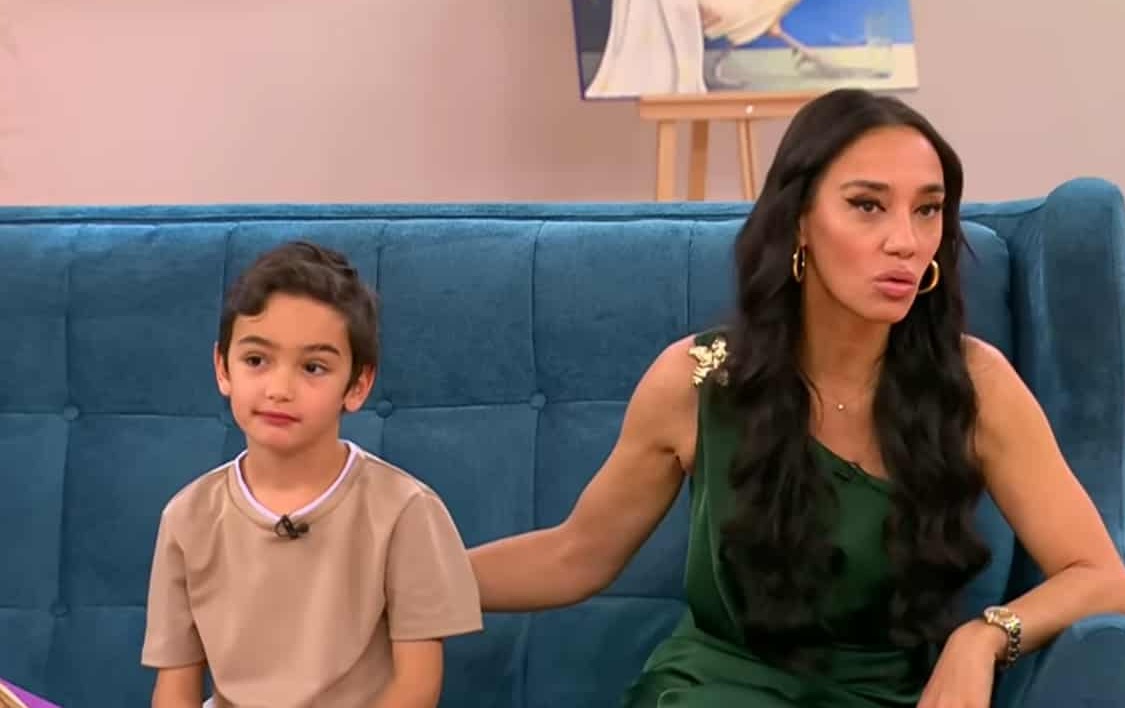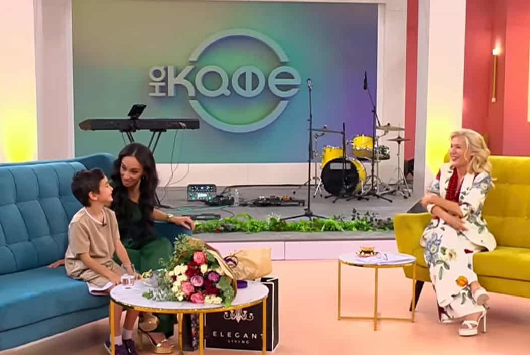 7-годишният син на Мария Илиева седна уверено на дивана до майка си и достойно се включи в разговора в студиото на „На кафе“.
