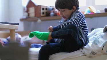 Дете си обува само чорапа. Снимка: Shutterstock