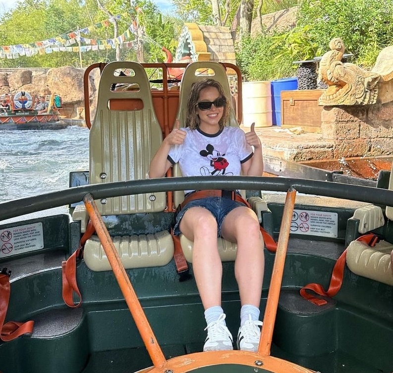 Съдейки по снимките, тя не е пропуснала нито една от атракциите, включително е посетила бързеите на река Кали в парка за животни Disney.