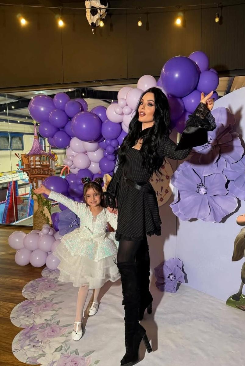 От тях става ясно, че Галина е празнувала с торта на 2 етажа в лилаво, а на върха й – малка принцеса, обиколена от цветя и пеперуди.