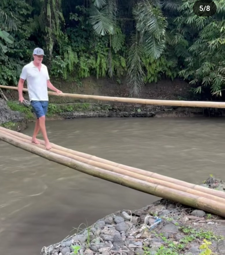 Съпругът й, който е съосновател на марката Casamigos Tequila, също е сниман на моста над реката, но Ранди Гербер е с небрежен стил – бяла тениска, сини шорти и бейзболна шапка.