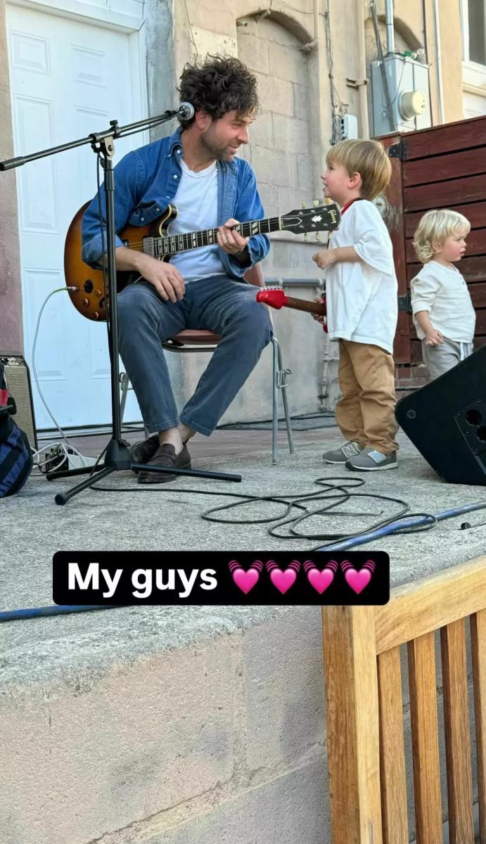 Гюс, който държи детска китара и свири. Снимка: Instagram