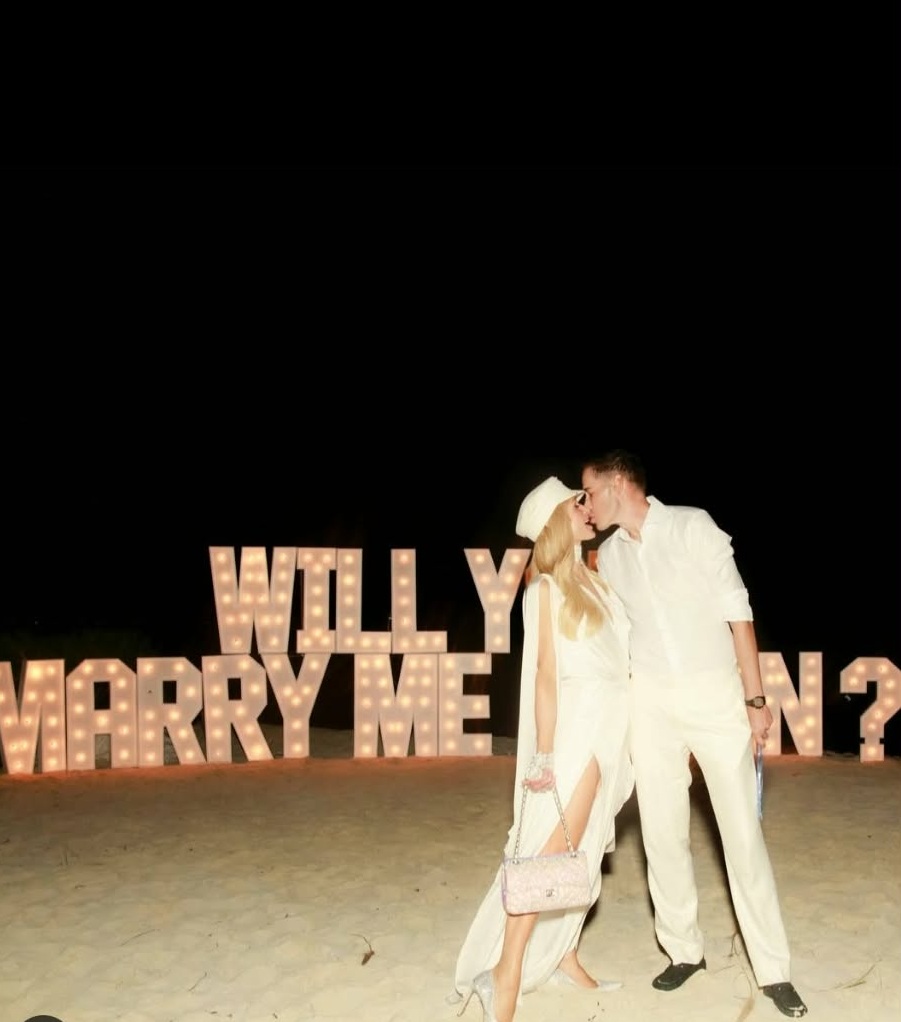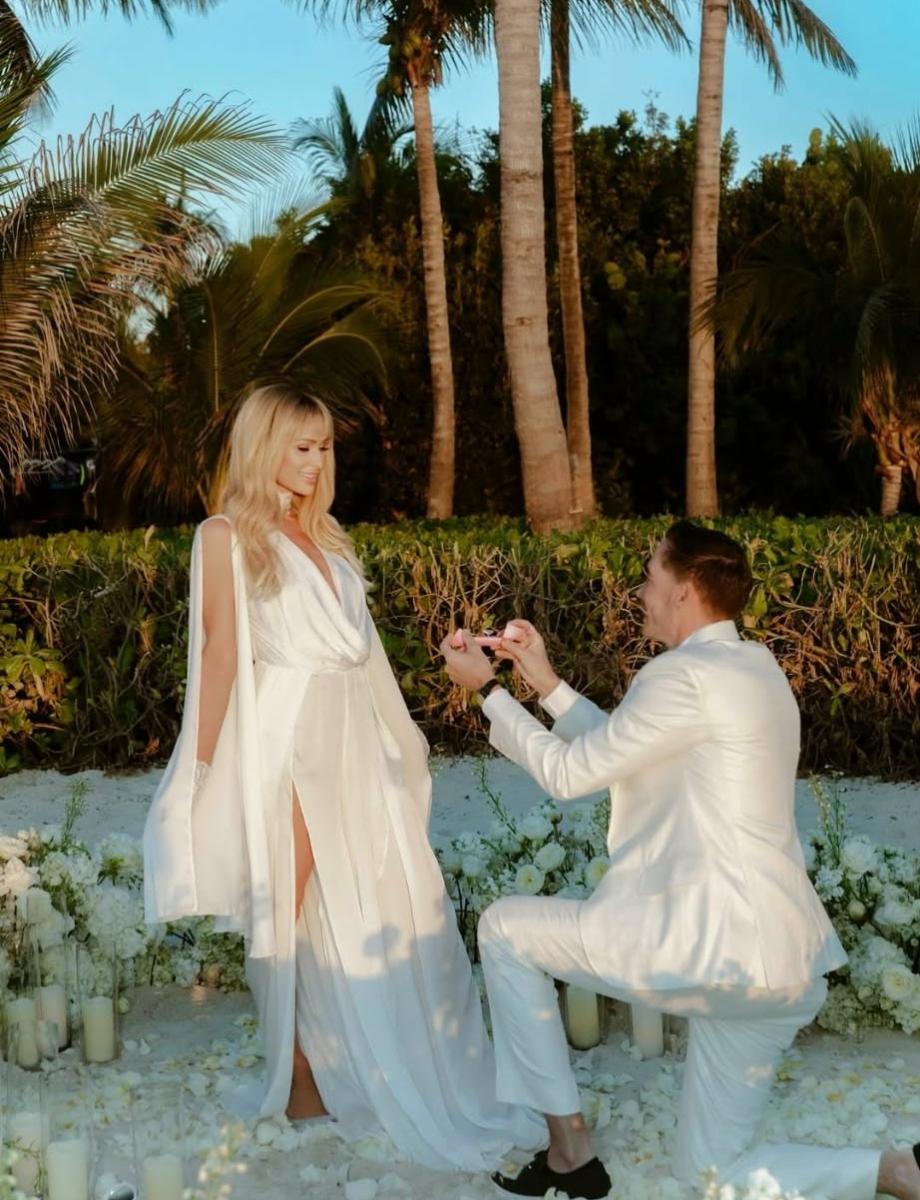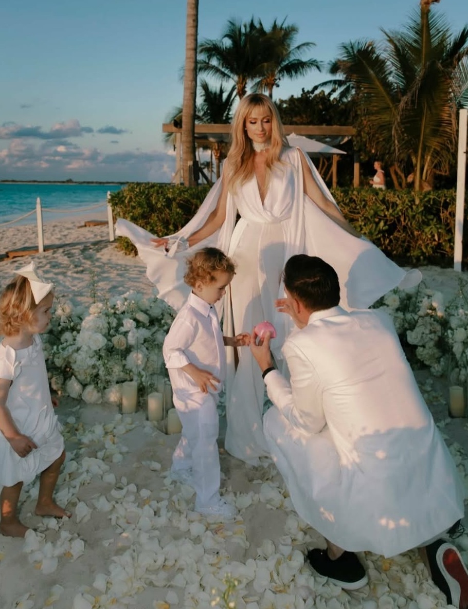 “Пет години по-късно... И това все още кара сърцето ми да бие по-бързо. На Свети Валентин, на лазурните брегове на островите Търкс и Кайкос - само няколко дни преди рождения ми ден - любимият ми предложи брак отново и аз казах „Да“. Но този път не бяхме просто съпруг и съпруга. Бяхме мама и татко. Финикс и Лондон наблюдаваха церемонията. Подновяването на нашите клетви не е просто честване на пет прекрасни години. Това е и демонстрация към децата ни, че любовта расте, задълбочава се и ние се избираме отново и отново. Пет години са отминали. Вечността е пред нас. Но вечността не е достатъчна за теб, Картър", написа Хилтън под снимката.