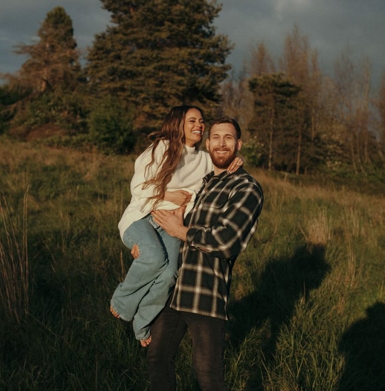 Любимият на актрисата също сподели снимка в социалните мрежи, на която държи в ръцете си бъдещата майка на детето си.