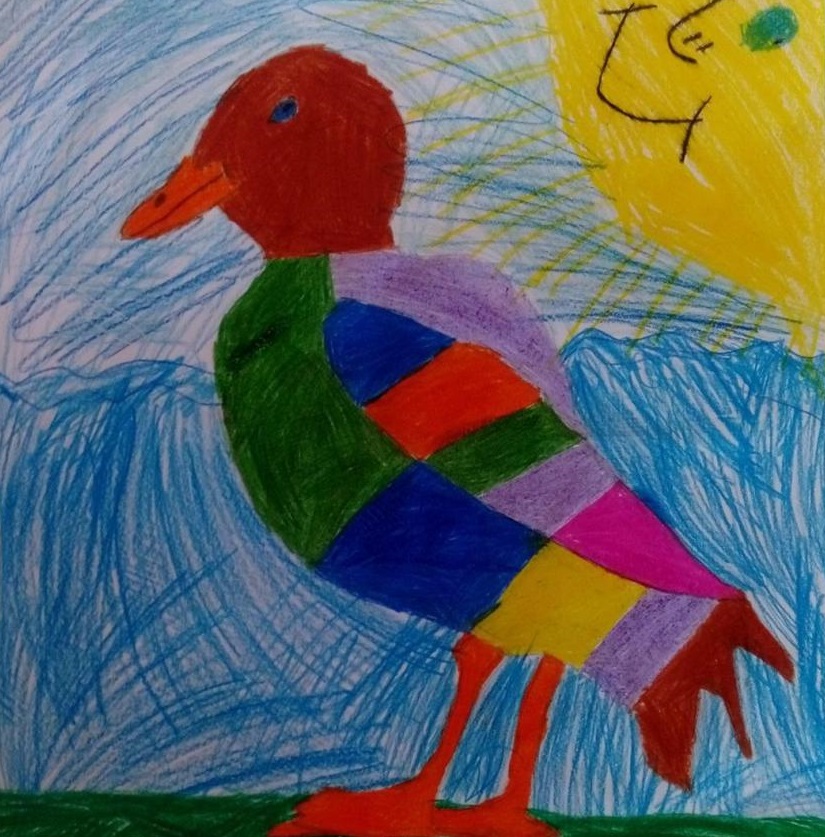 9-годишната Влади ни изпрати рисунка на най-шареното пиле, което сте си представяли. Решихме, че е мъжка дива патица, но така и не успяхме да я попитаме дали това пернато ѝ е позирало или птицата е плод на нейната цветна фантазия.