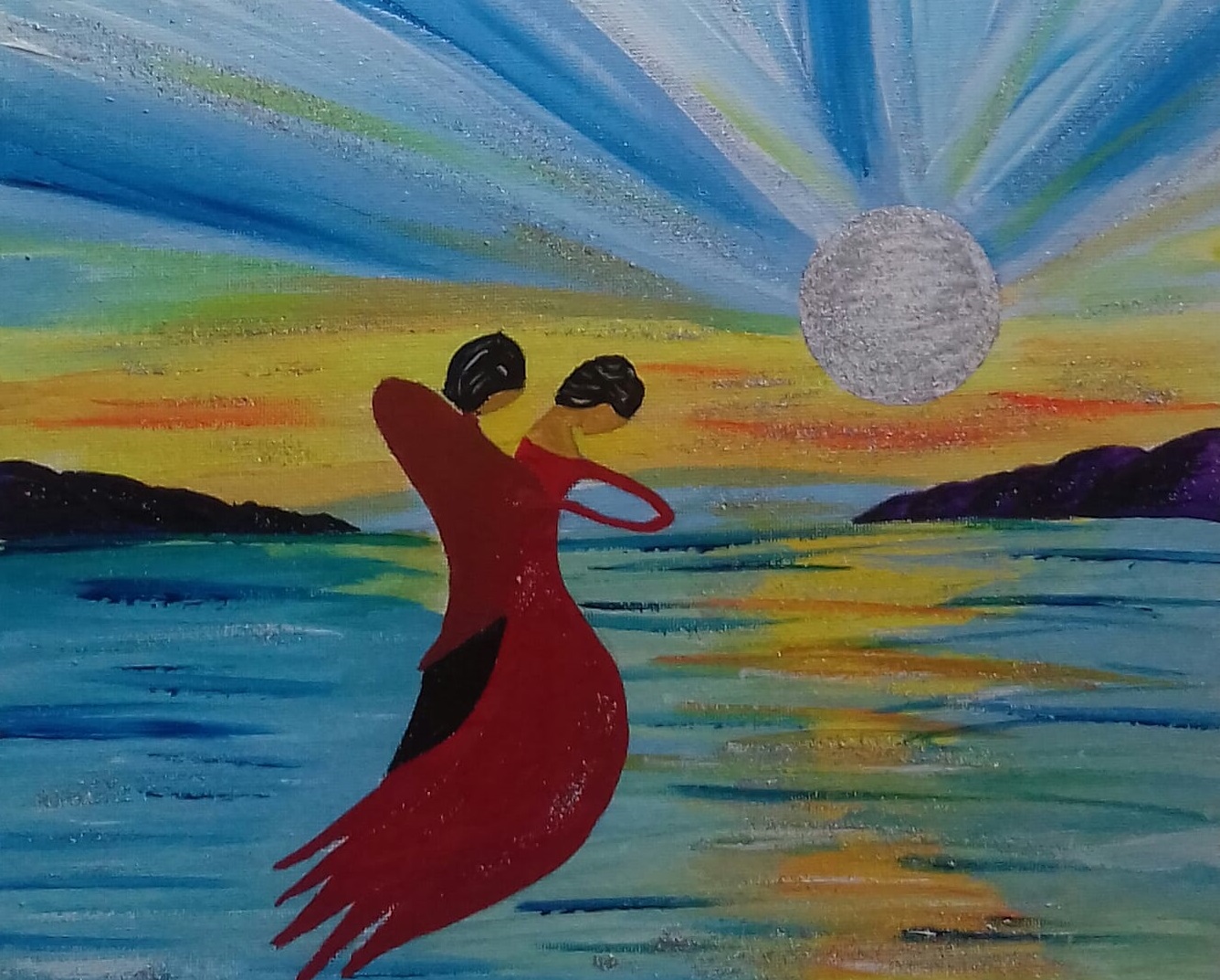 Дара още не е навършила 5 години, а има почерк на истински творец. Доказателство е поредната картина, която ви представяме. Направена е с акрил и брокат.