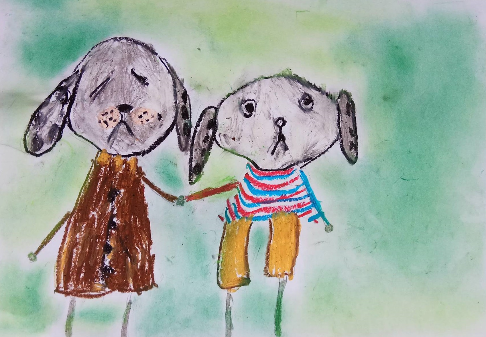 7-годишният Борил опитва нова техника за рисуване. Научил се е в занималнята, където работи с една любима учителка- мис Ева. Неговите кученца определено имат характер.
