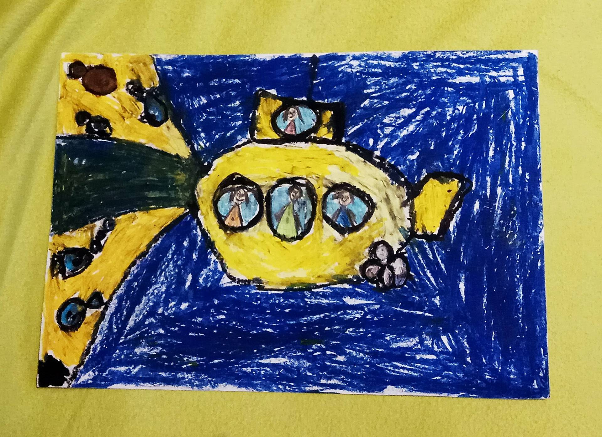 7-годишният Боби е нарисувал с маслени пастели междузвезден кораб, който се е насочел към Луната. И всички места, както виждате, са заети.