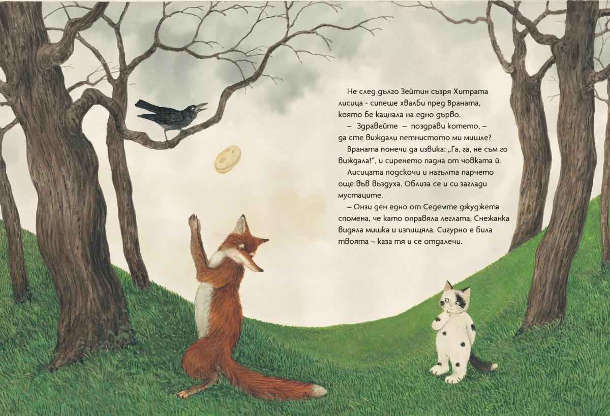 Зейтин тръгва да търси любимата си и играчка - петнистото мишле из приказната гора, но дали то е при Вещицата, надвесена над черния си казан със спаначена супа? Или пък е попаднало при Лисицата и Враната? А може би Седемте джуджета ще помогнат на котето да открие своето петнисто мишле, както са тръгнали за гъби?