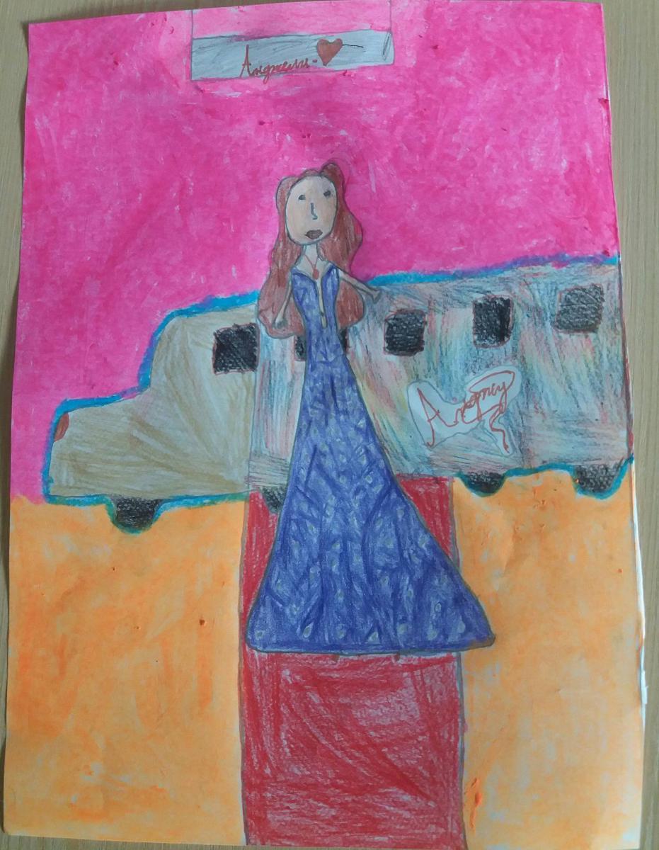 С много фантазия и добро познаване на звездния етикет в Холивуд, Влади е нарисувала пристигането на своята любима изпълнителка на гала вечерта за раздаване на наградите.