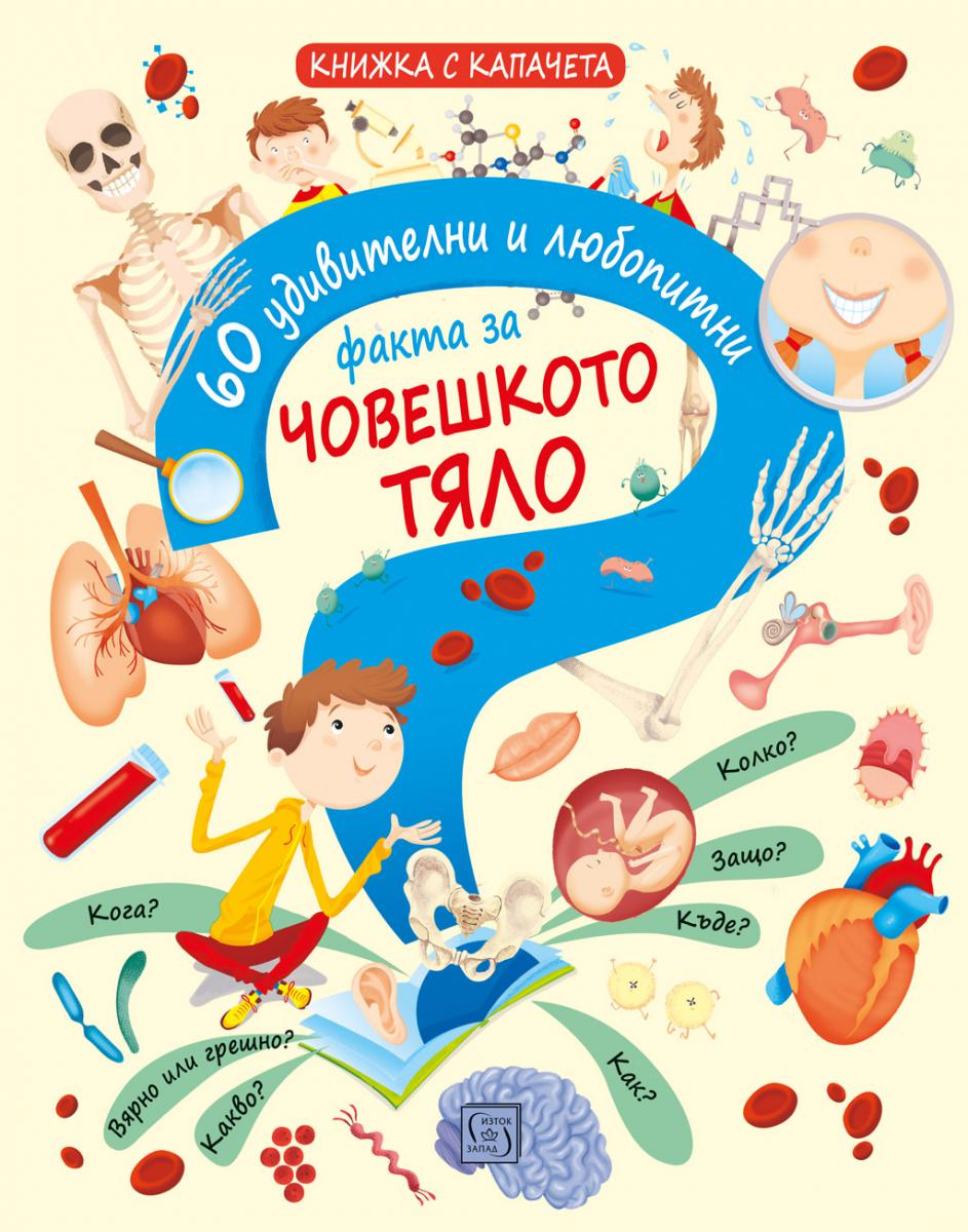 Любознателните малчугани и техните родители ще открият невероятни факти за човешкото тяло и как функционира, под капачетата на книжката „60 удивителни и любопитни факта за ЧОВЕШКОТО ТЯЛО“.