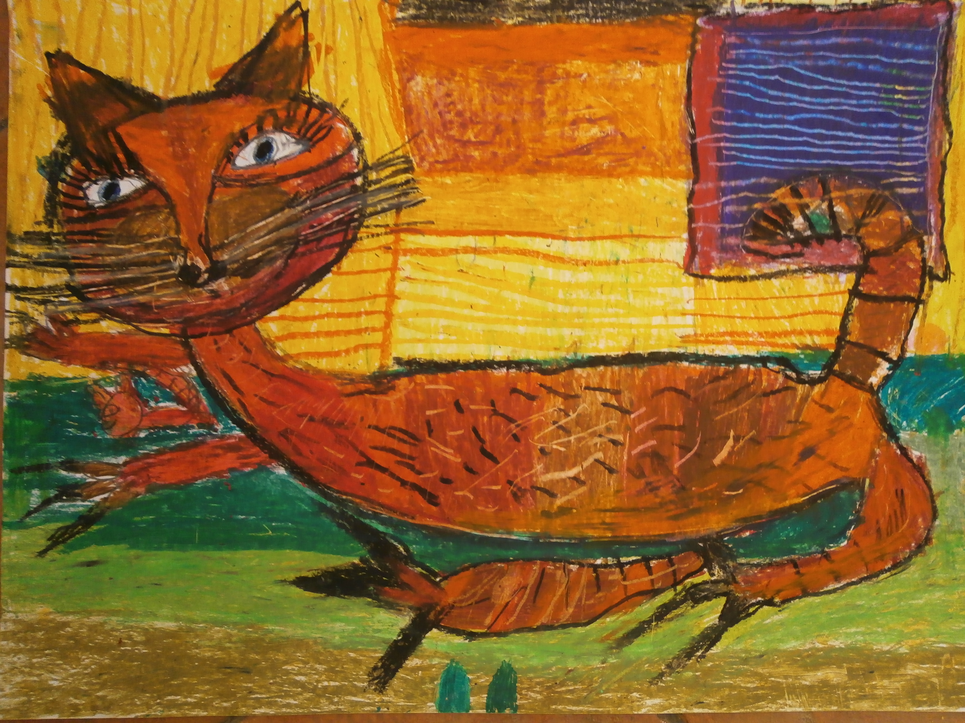 6-годишната Анна представи своята „Котка“ на изложбата „Монмартър” в Битоля. Дори да не обичате котки, тази ще ви хареса. Толкова цветна и мила е.