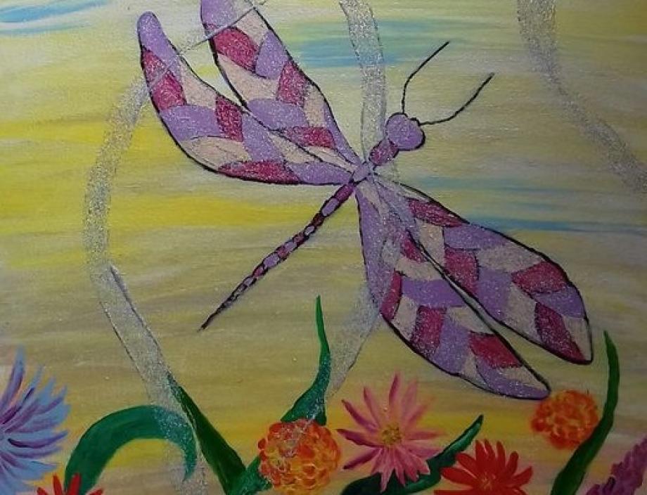 Дара още не е навършила 5 години, а вече рисува като голяма. Доказателство е поредната картина, която ви представяме. Направена е с акрил и  брокат върху картон.