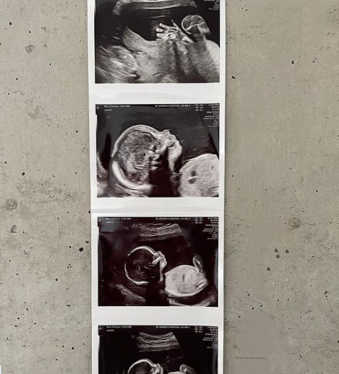 В поста си тя отбелязва и стилиста Марк Хамптън. По всичко изглежда, че той е баща на бебето, тъй като Хамптън пусна същите снимки и аналогичен коментар.