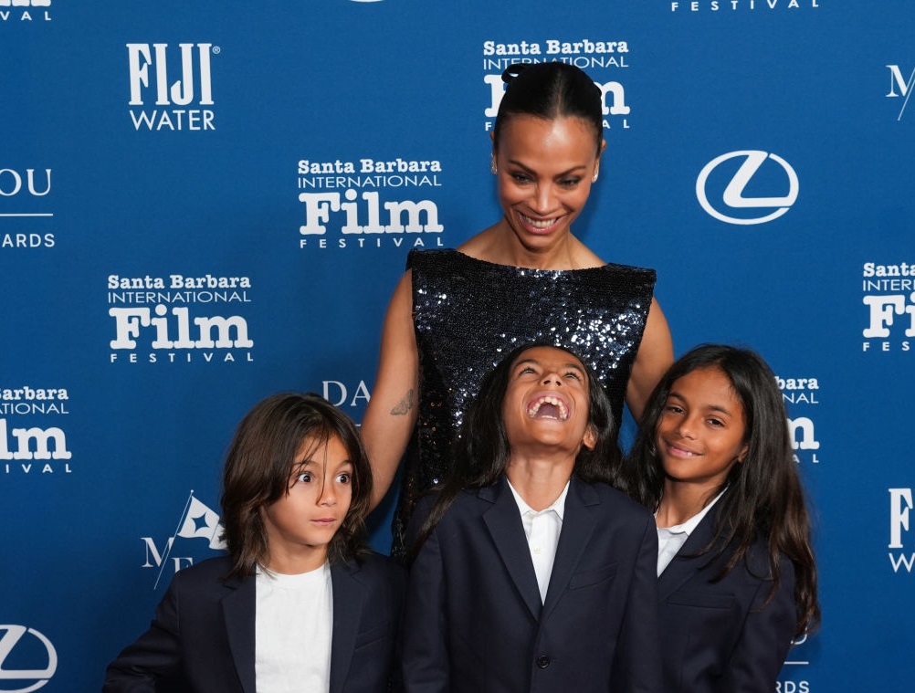 Зоуи Салдана с трите момчета. Снимка: Getty