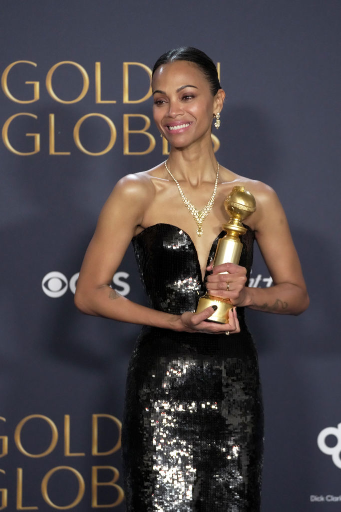 Зоуи Салдана на 82-те годишни награди "Златен глобус" в Бевърли Хилс. Снимка: Getty