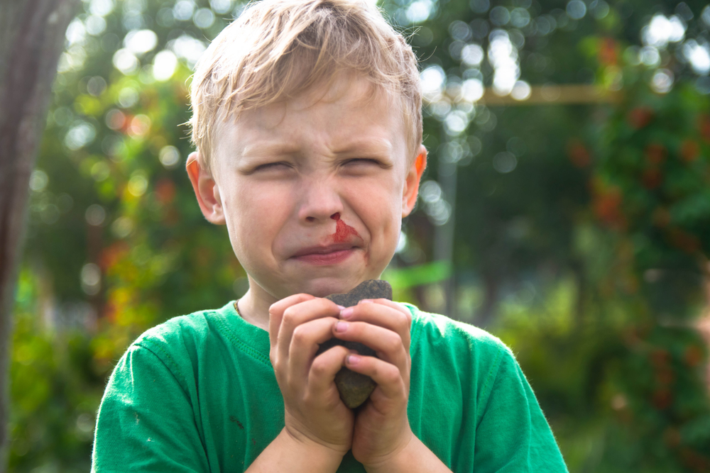 Най-важното е да запазите спокойствие и да успокоите детето, което може да бъде доста уплашено при вида на кръвта. Обяснете, че не е нещо сериозно и скоро ще свърши.