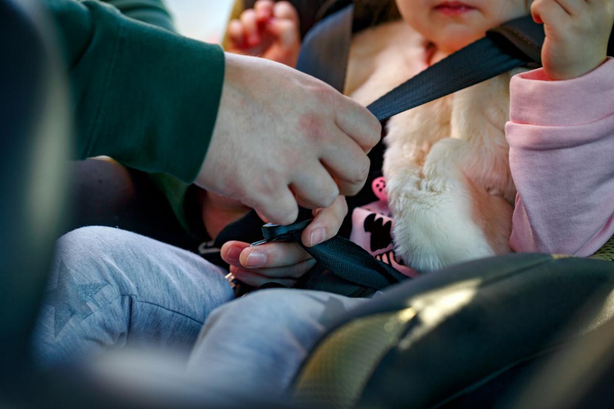 Ако пътувате през зимата, има 2 варианта. Или първо затоплете колата, или стегнете детето с коланите, а отгоре му сложете дреха и шапка.