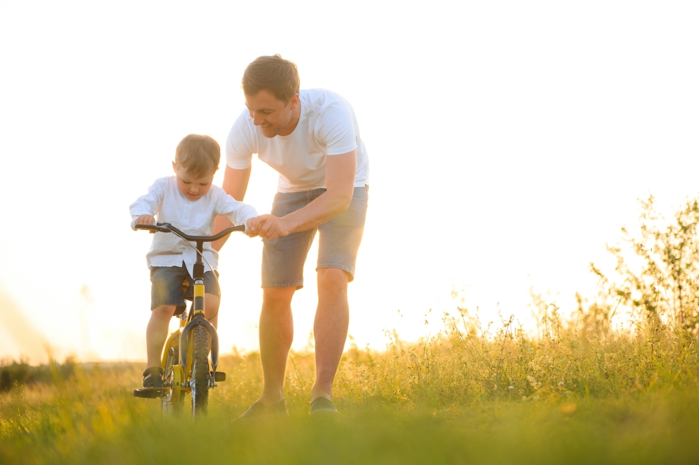 Баща учи детето да кара колело. Снимка: Shutterstock
