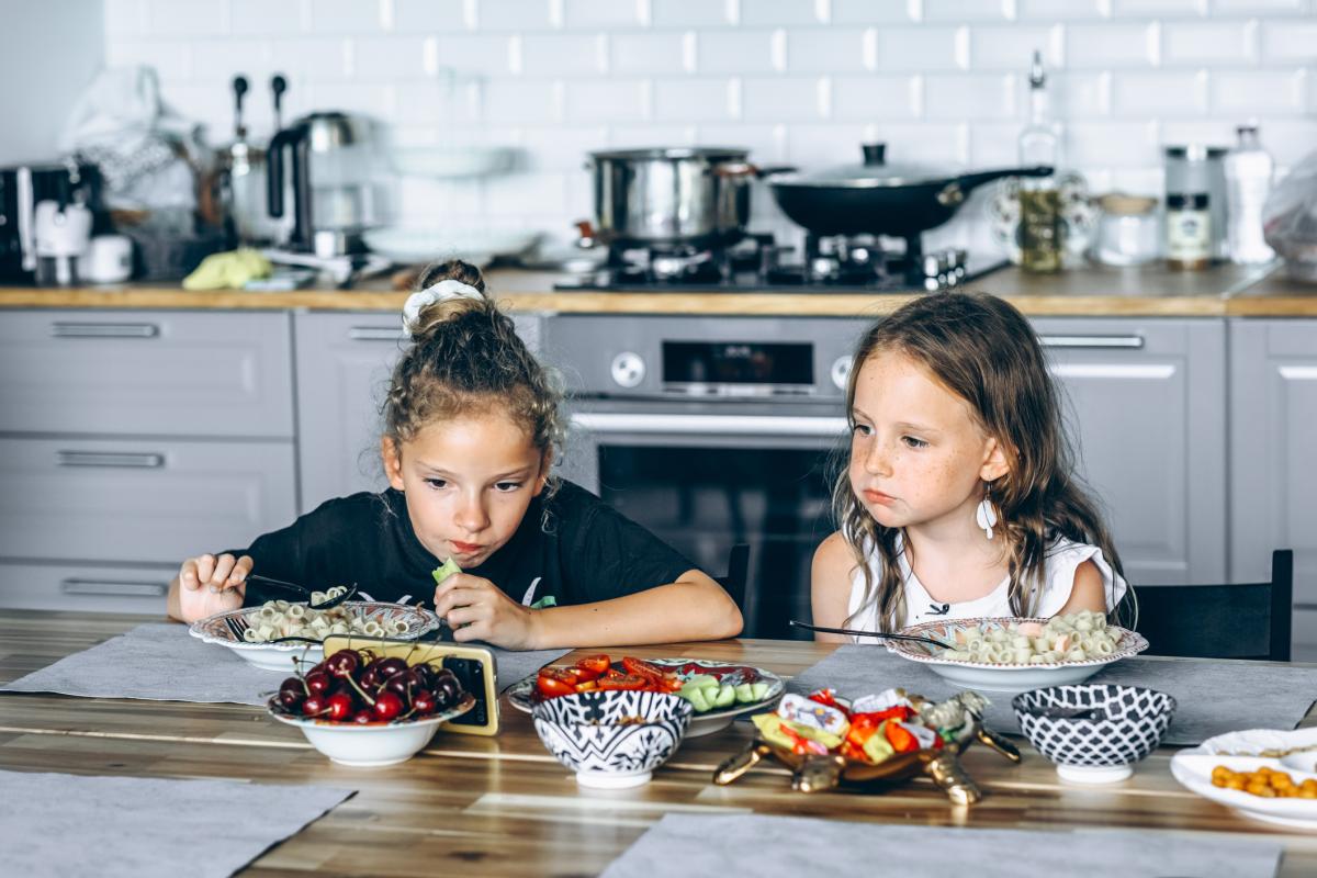 Момиченца гледат анимация, докато се хранят. Снимка: Getty