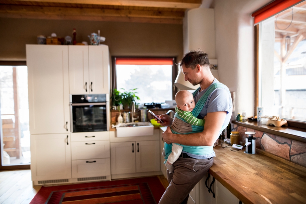 Татко носи бебето в слинг. Снимка: Shutterstock
