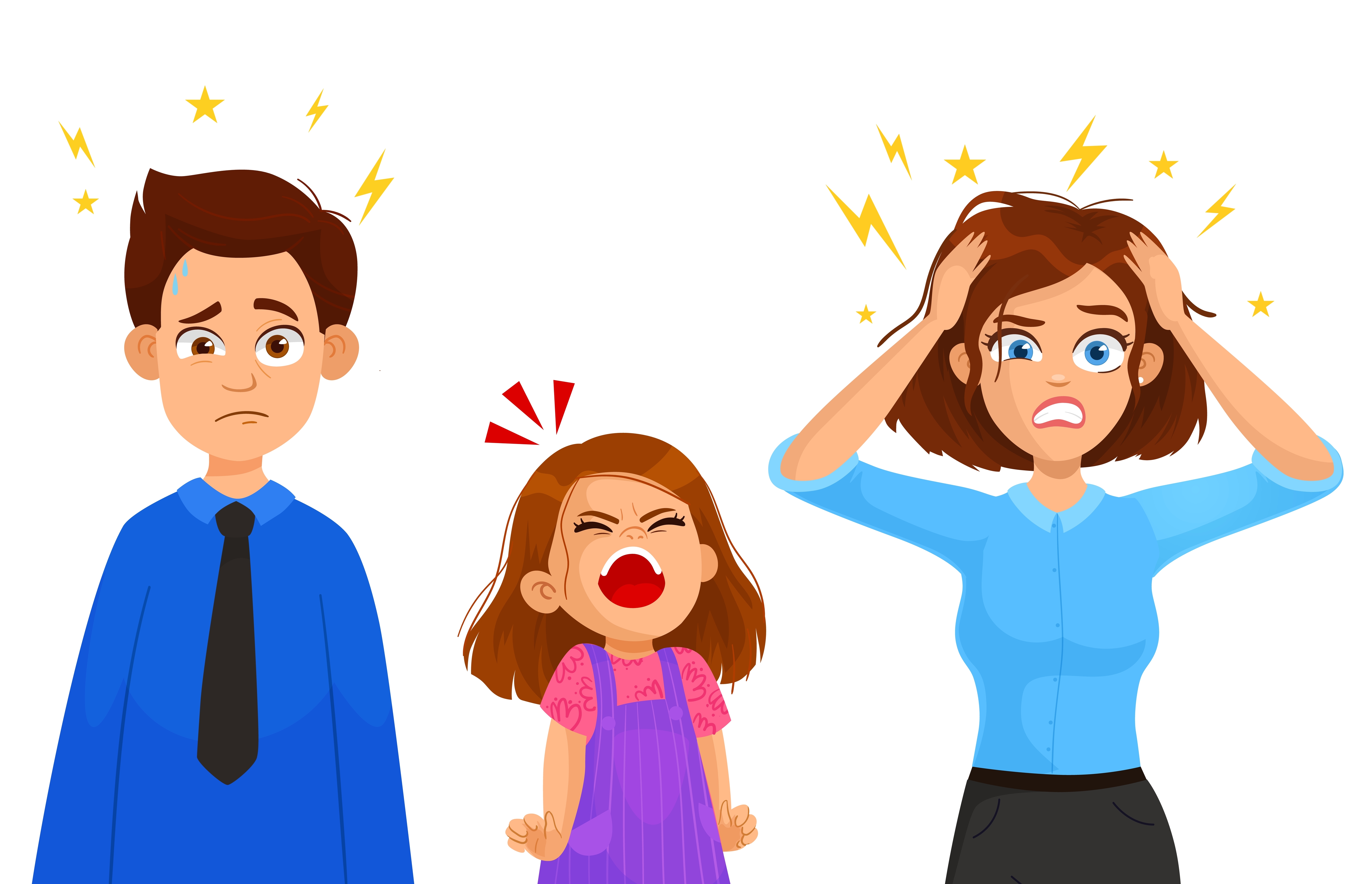 Родители, които се държат за главата пред истериите на детето. Илюстрация: Shutterstock