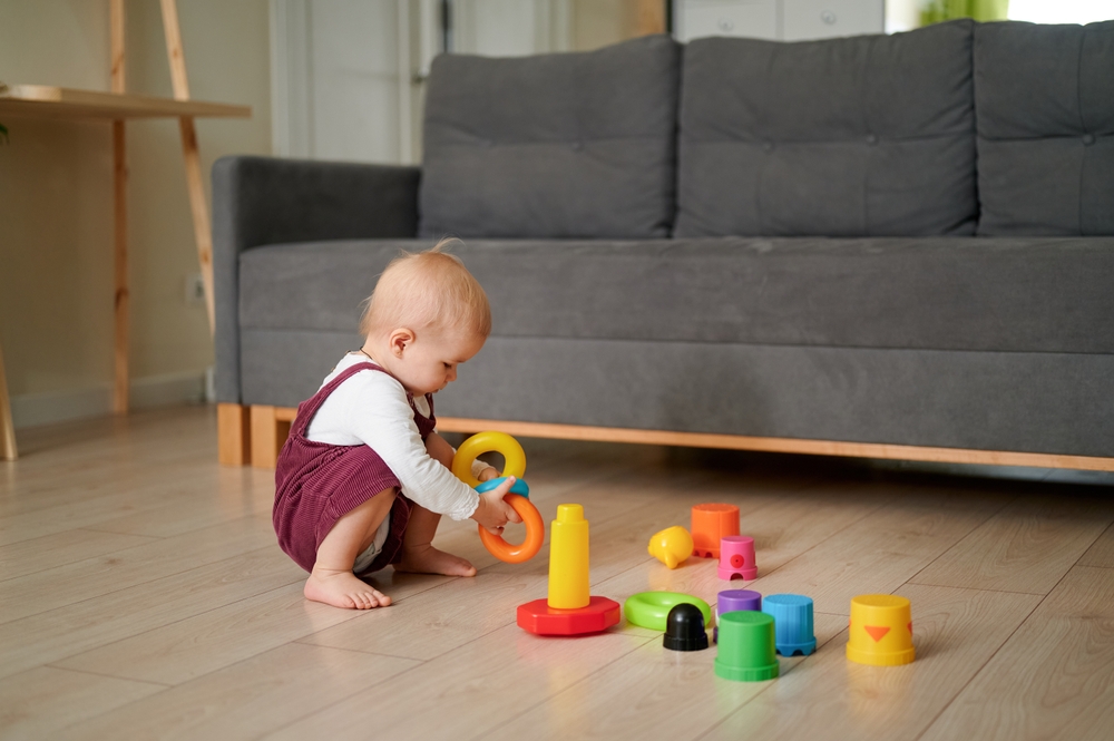 Бебе събира и подрежда играчки. Снимка: Shutterstock