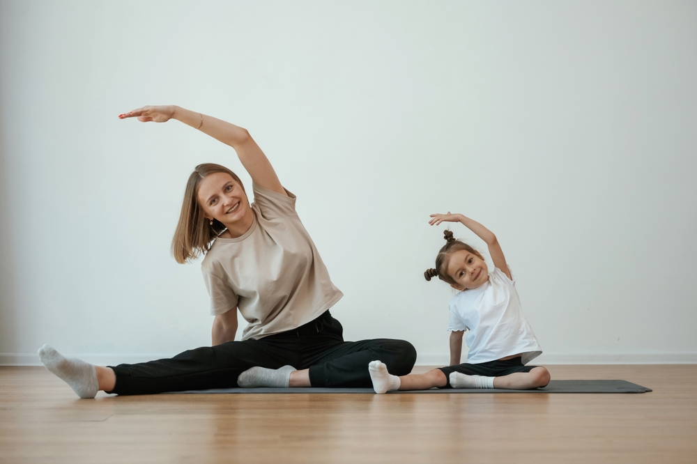 Майка и дъщеря правят йога упражнения. Снимка: Shutterstock