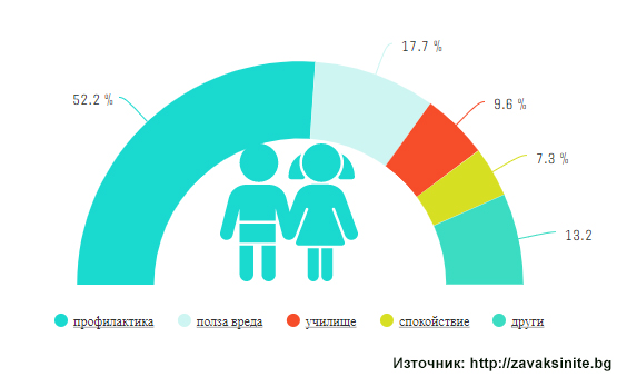 52.2% от участвалите в проучването, които са ваксинирали детето си, са го направили, защото считат, че ваксините предотвратяват заразни и много опасни болести. 17.7% са на мнение, че ползите са в пъти повече от вредите, а за 9.6% водещият мотив е, че ако не ваксинират детето си, няма да може да го запишат на детска градина и на училище.